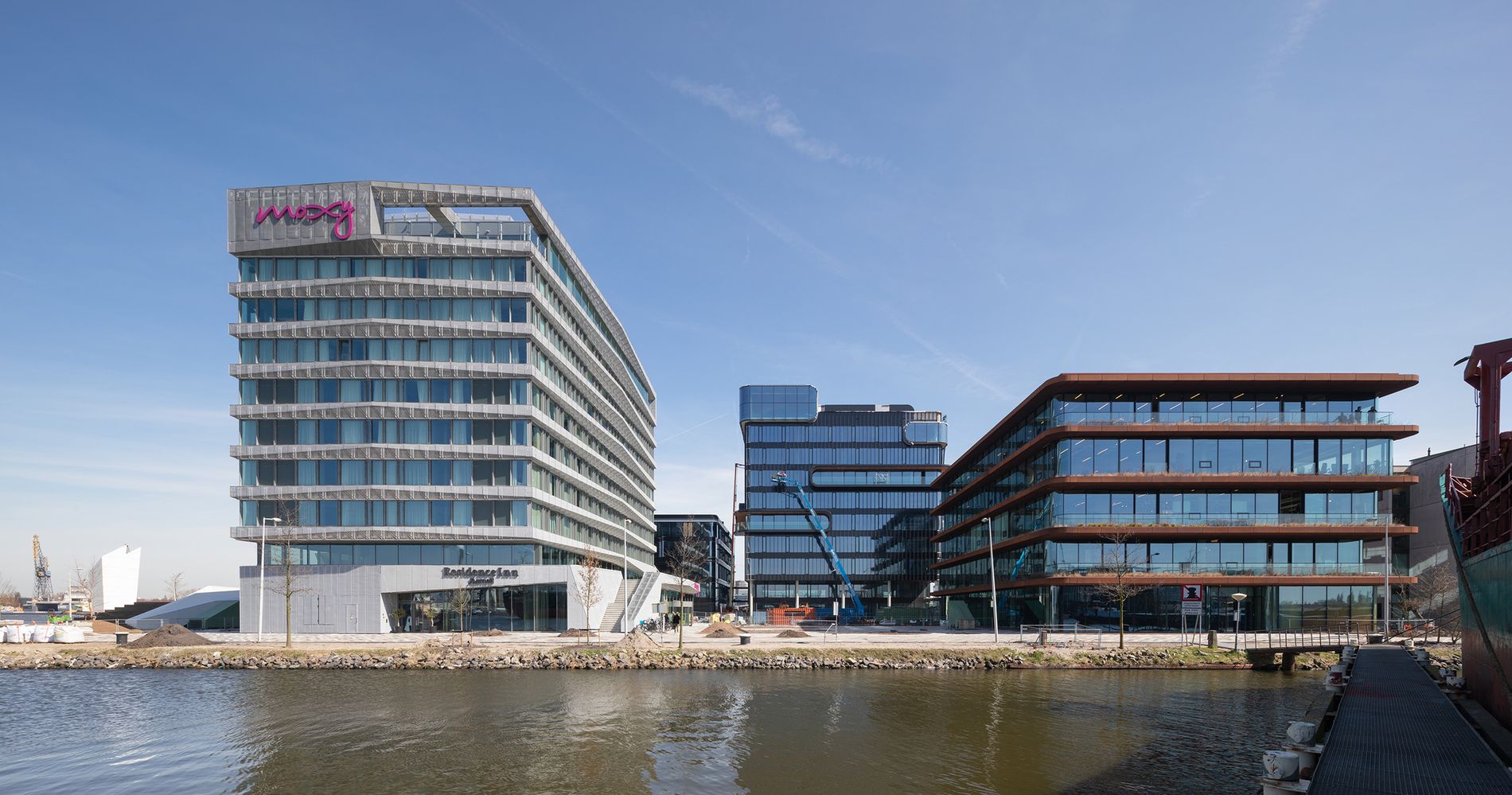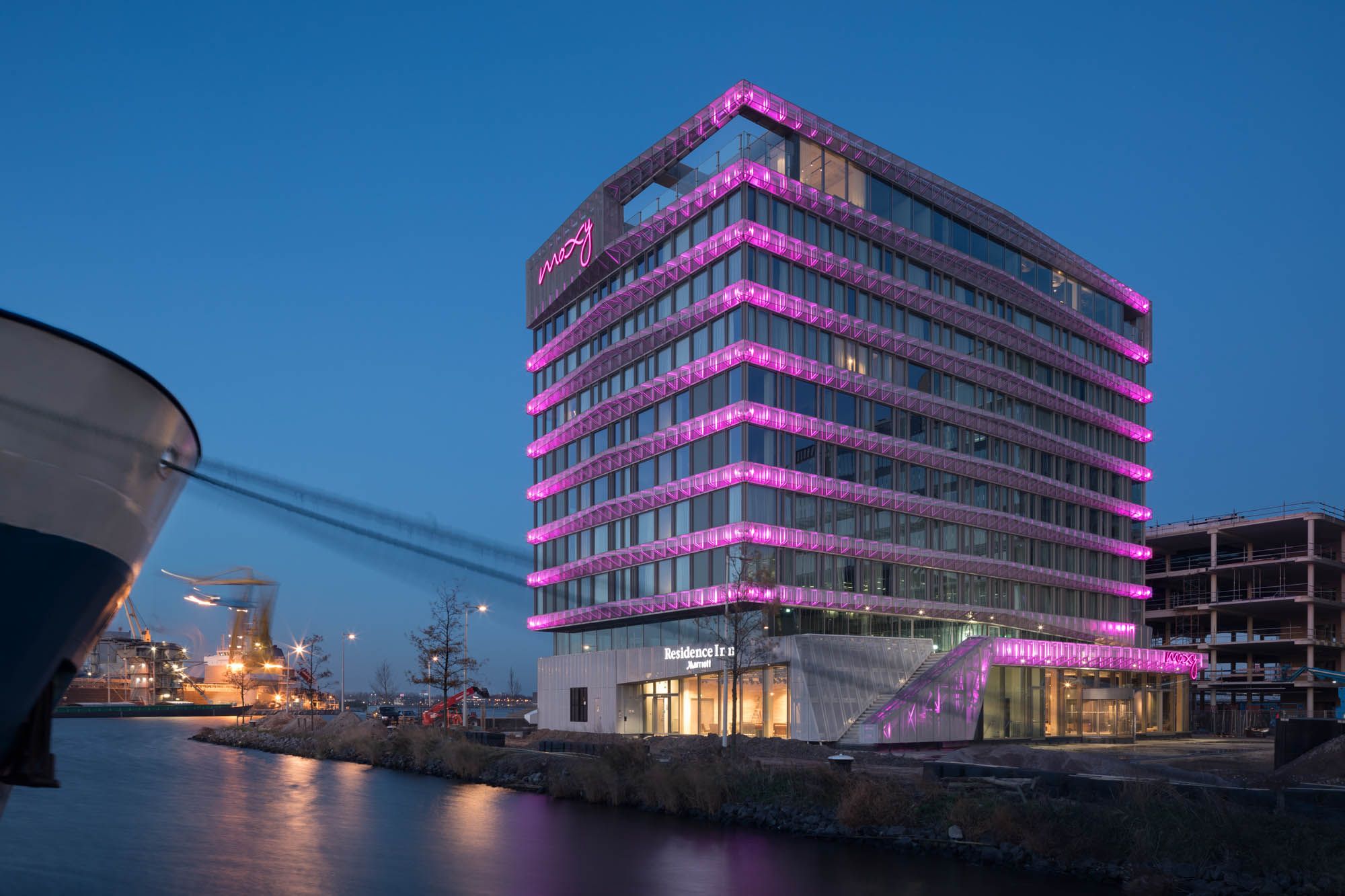 Het hotel staat op de kop van een pier in de Houthaven in Amsterdam, direct aan het IJ. Als hoogteaccent markeert het de overgang naar de lagere bebouwing verderop de pier. Het ontwerp paste binnen een zorgvuldig stedenbouwkundig ensemble van afwisselend hoge en lage volumes.