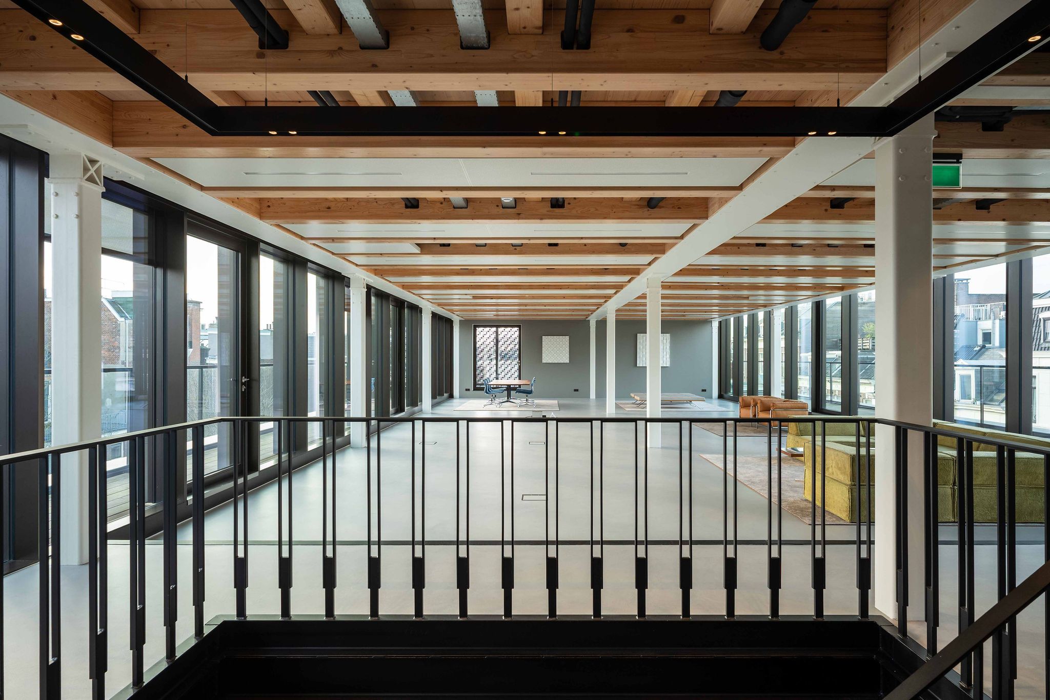 Het gebouw voldoet aan de Paris Proof-norm en is energieneutraal. De hybride bouwconstructie is met maximale aandacht voor detail afgewerkt: er zijn stalen, momentvaste kolommen en de technische installaties zijn weggewerkt in de warme houten plafondconstructie.