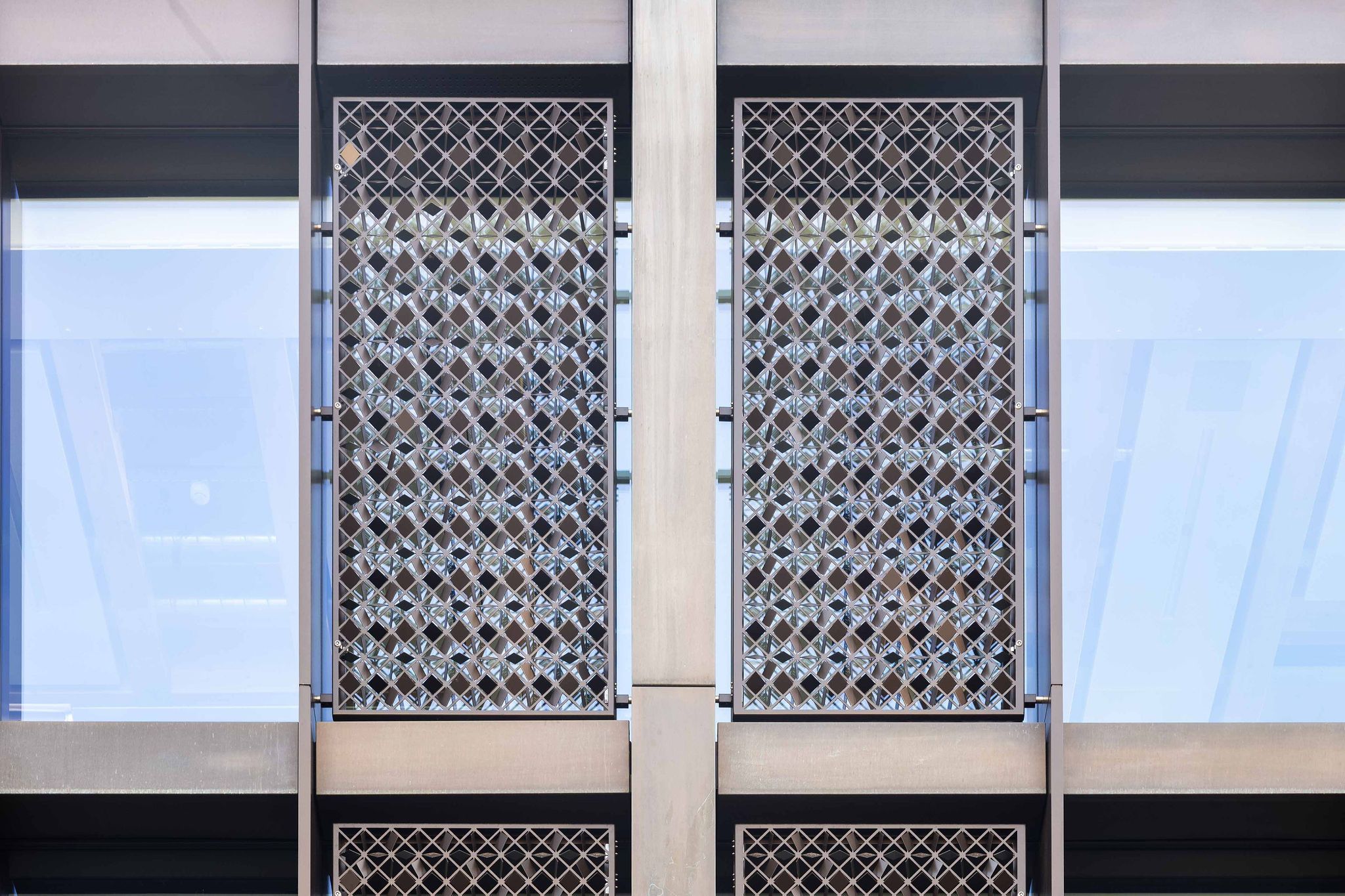 Tegelijkertijd contrasteert de nieuwe gevel met de traditionele context. Het nieuwe ‘gezicht’ van het gebouw kent een hoge mate van transparantie dankzij plafondhoge ramen in combinatie met het bronskleurige gevelgrid.