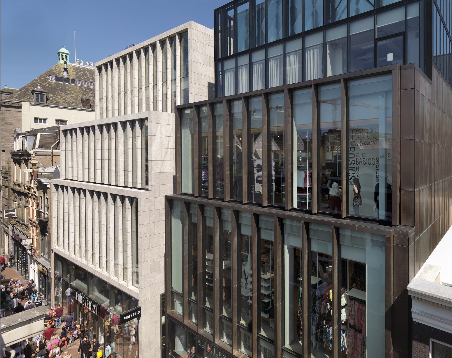 Het nieuwe ontwerp brengt het eeuwenoude ritme van de stad terug naar het Rokin. Tegelijkertijd is het gebouw gericht op de toekomst: met robuuste, tijdloze materialisering en oog voor de ervaring van het winkelend publiek.