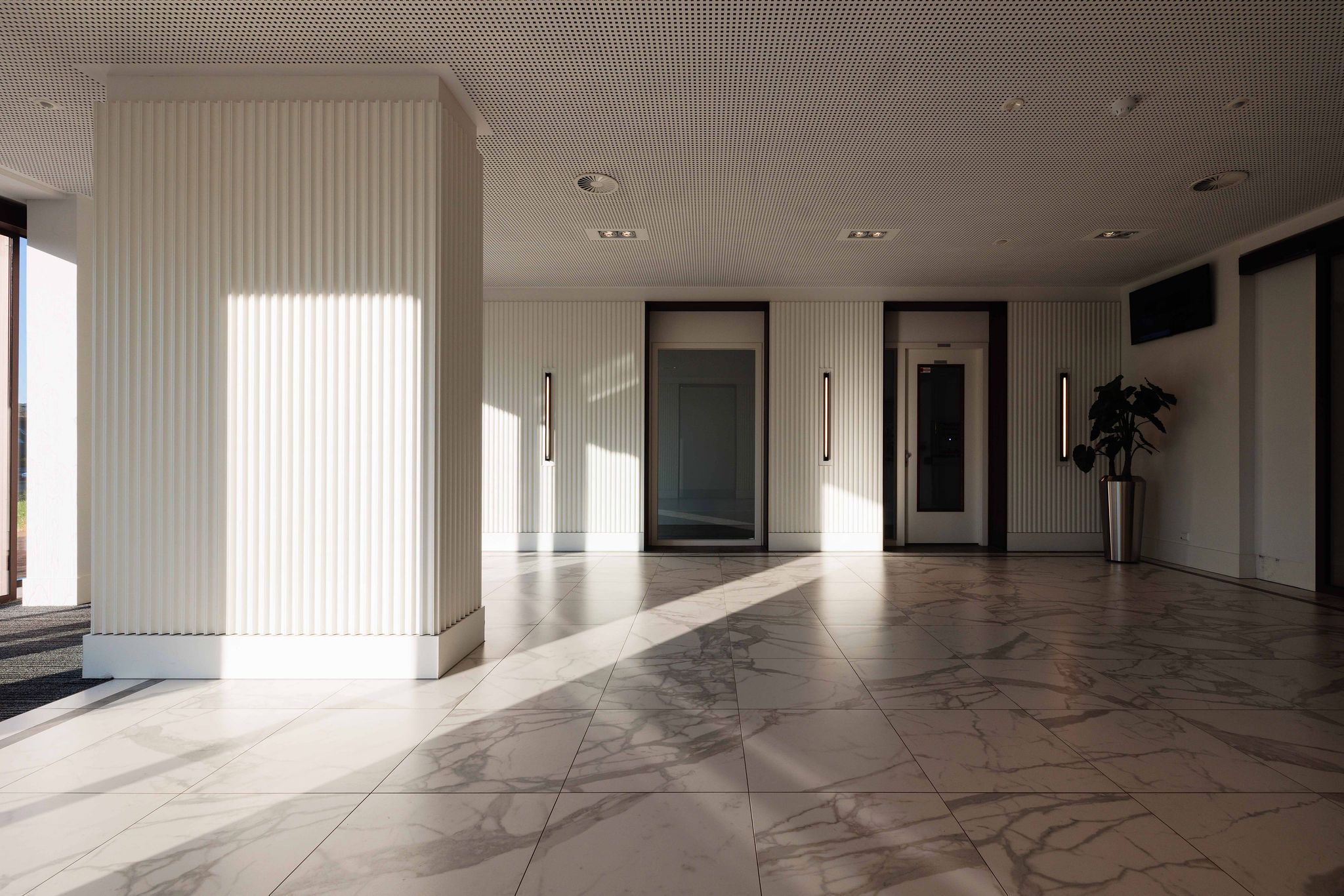 Er is extra aandacht besteed aan de entreezone. Het gebouw heeft een royale, lichte lobby die beide zijden van het gebouw verbindt. Rondom de toren ligt een groen landschap, ter beschutting van het drukke kruispunt.